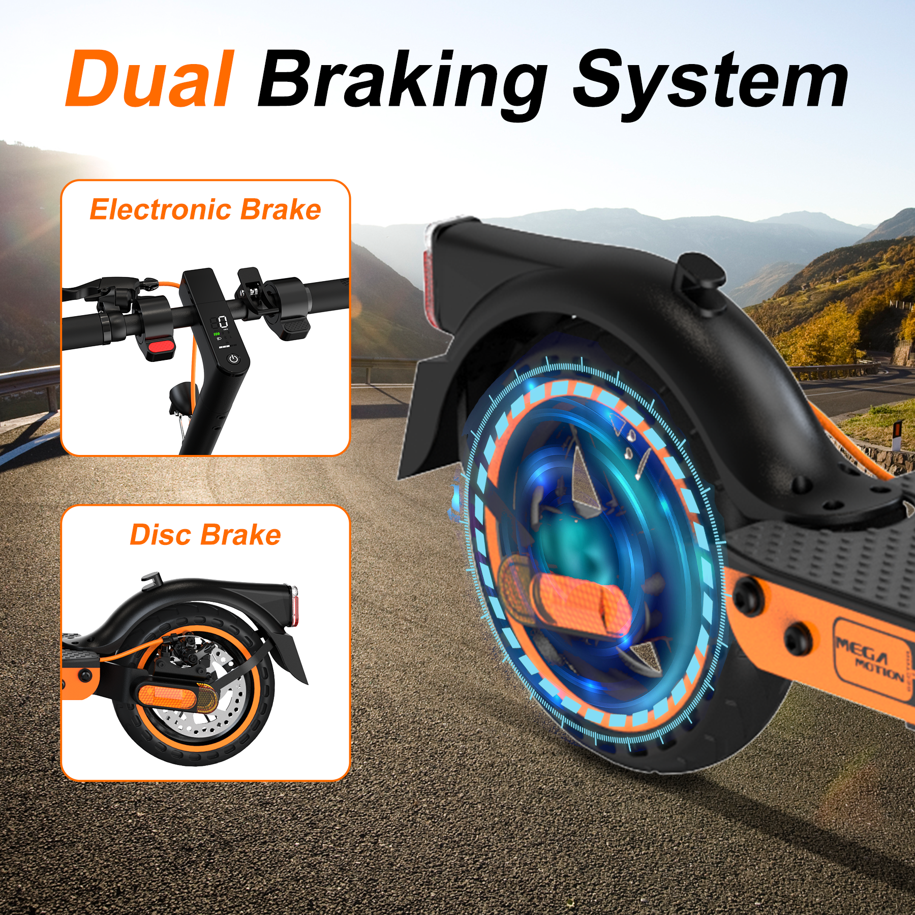 Les trottinettes électriques MEGA MOTION sont certifiées IP54, ce qui les protège des pluies légères et des éclaboussures. Toutefois, nous déconseillons de les utiliser sous une forte pluie ou dans des flaques d'eau profondes afin d'éviter d'éventuels dommages aux composants électroniques.