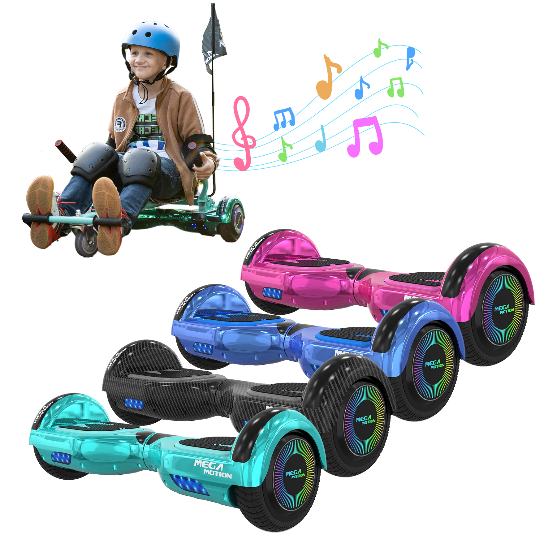 MEGA MOTION A03 Hoverboard for Kids, Two Kids Riding Hoverboards with Go-karts Image